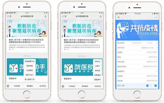 网上医院门诊,将专家门诊送进乡村,为广大村民享受互联网诊疗服务提供了入口和快速通道;在村务平台网站开辟的“防疫专栏”,第一时间整合并报道重要防疫信息,引导村委发布农村疫情防控指引等最新信息,使村民及时掌握;外来车辆信息收集功能,以二维码形式收集整理辖区内所有检查点的外来车辆信息,镇政府可在后台直接调出每个检查点信息并详细筛查、及时布控。平台防疫功能上线至今,已覆盖9个行政村,惠及2万多村民,使阻击疫情真正落到实处,提高乡村防疫整体工作效率和成效。