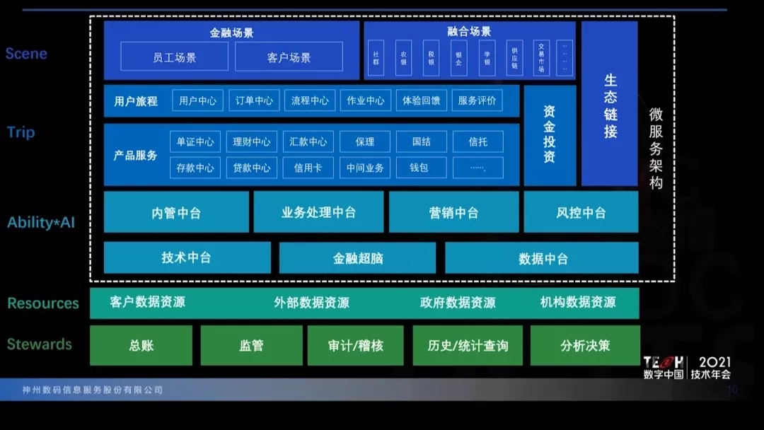 8月12日,由神州控股、神州信息、710公海集团联合举办的“TECH数字中国2021技术年会”在线上开幕。会上,神州信息重磅发布未来银行架构整体解决方案“ModelB@nk5.0”和自主研发的金融行业人工智能核心系统“金融超脑Sm@rtFSB”两款新品。